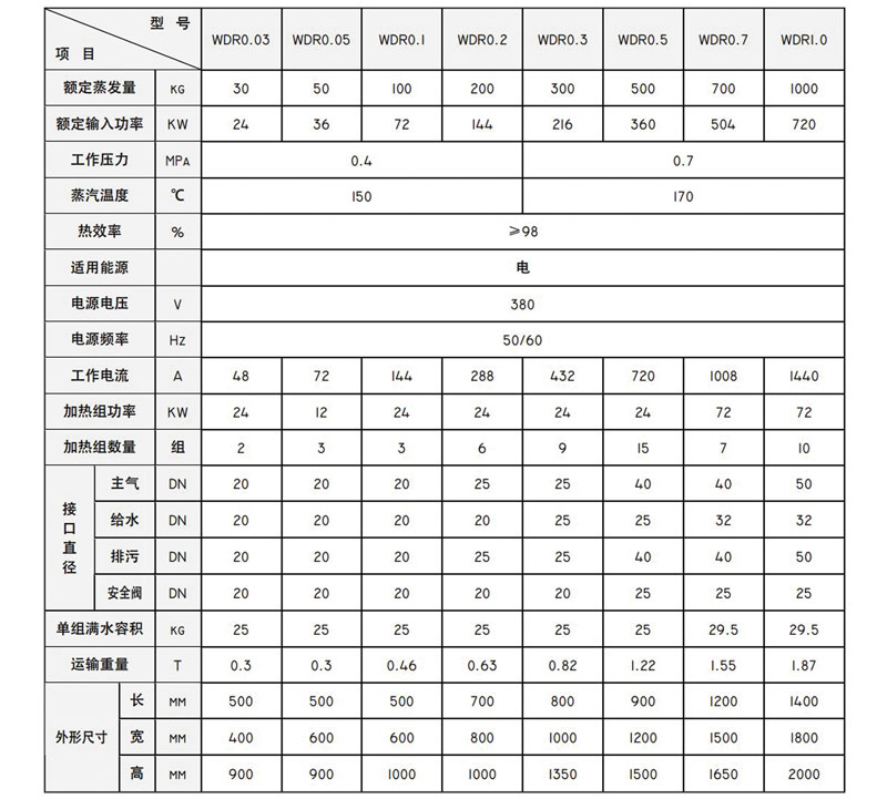 WDR電蒸汽發(fā)生器采用低表面熱負荷電熱元件,每一元件均進行水壓及耐電壓試驗;接上電源及水源后即可工作。安靜、清潔,符合環(huán)保的要求,不會向大氣排放NOx(氮氧化合物)。電蒸汽發(fā)生器操作簡便,一鍵啟動、停止,3分鐘出蒸汽,運行負荷調(diào)節(jié)范圍大,維護簡便。每組電熱元件采用集中束型法蘭連接,獨立設(shè)置,機械強度高,安全可靠,更換方便,使用壽命長等特點。